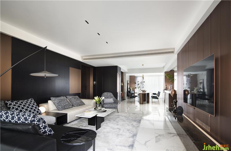 金屬格柵陣列排序,搭配大理石石材電視柜臺(tái),在滿足功能的情況下,少即是多,用“減法”的設(shè)計(jì)方式,去實(shí)現(xiàn)高級(jí)的狀態(tài)。