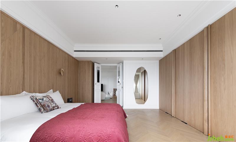 主臥將優(yōu)雅格調(diào)契合于空間的留白,家居裝修沒有增設(shè)過多的陪襯與擺設(shè),使純凈雅致的空間基底更具為純粹。原木質(zhì)感的圍合,點(diǎn)綴少量金屬元素,同時(shí)引入窗景,烘托出休憩空間的舒適氛圍。