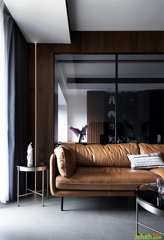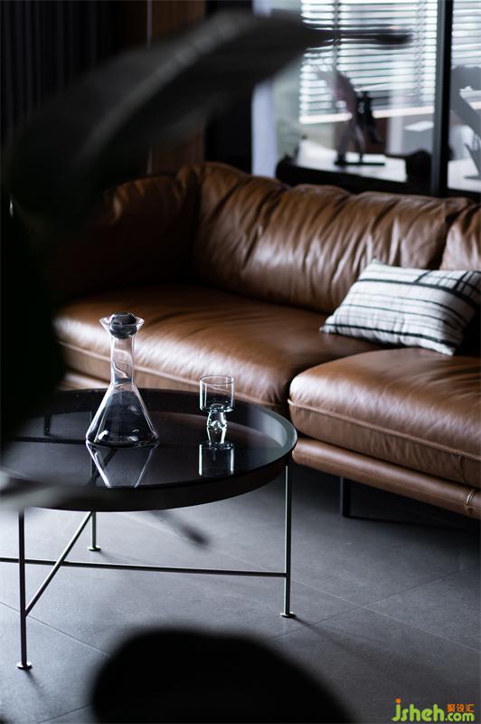 皮面愛(ài)馬仕橙沙發(fā)于黑、灰色空間中散發(fā)出一種文雅和煦又帶著些許的幽默紳士氣質(zhì)。也調(diào)和傳遞出空間的溫度。