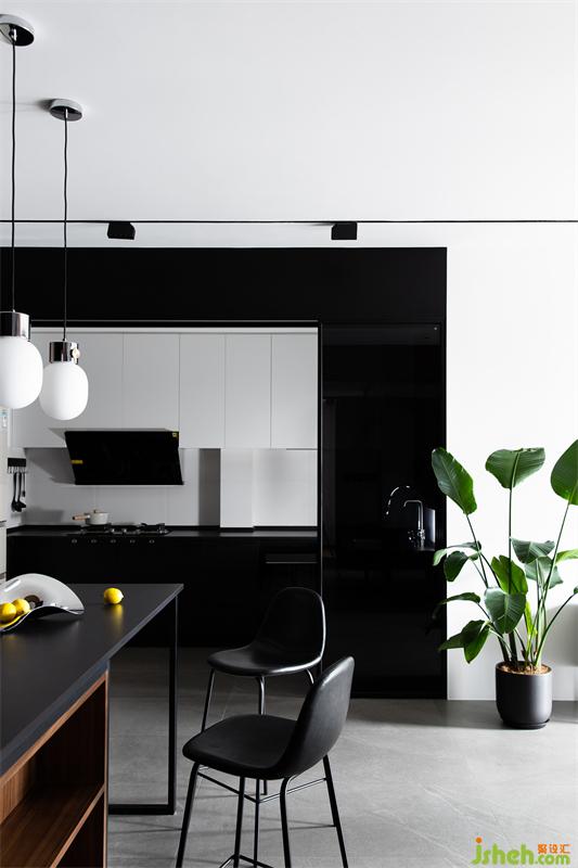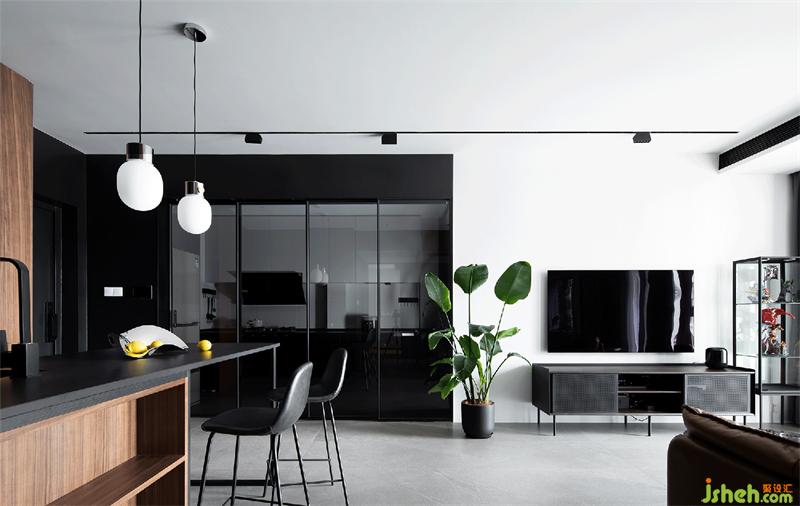推開(kāi)黑色玻璃推移門(mén)后,也足夠藏下人間煙火氣。棱角塊面分明的簡(jiǎn)潔,半開(kāi)放式的設(shè)計(jì)在考量互動(dòng)體驗(yàn)之余,也讓空間盡顯純粹、干練。