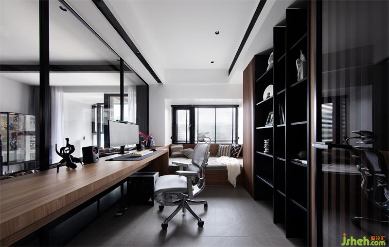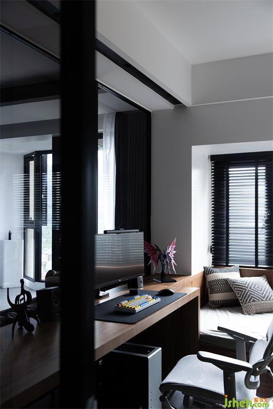 獨(dú)立書房是屋主最愛的角落,視線上與客廳呈半聯(lián)通狀態(tài),可以隨時(shí)和喜愛的手辦待在一起。平時(shí)的加班工作、娛樂電競,或是困倦時(shí)肆意翻躺于柔軟的臥榻上,享受隨性的慵懶時(shí)光。