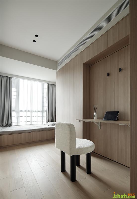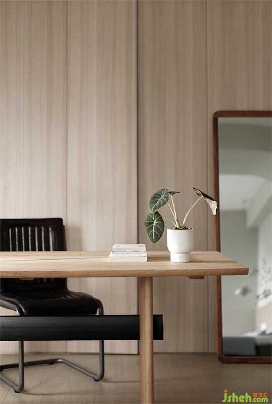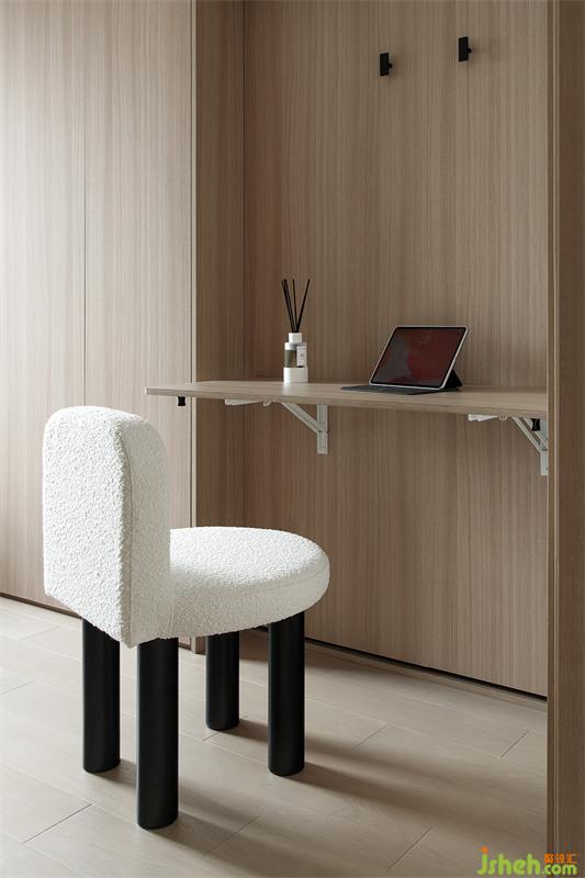 兩個臥室合并后的功能與形式,讓居家的日常被重塑,獨立的辦公桌椅,將這種自由蔓延開來,映射在每一個獨處的時光中……