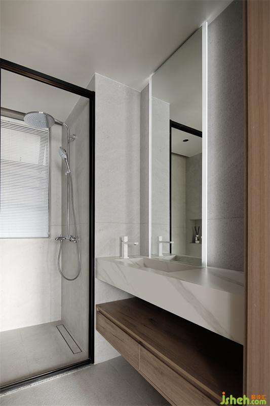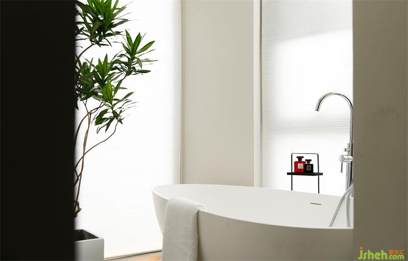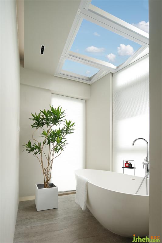 屋主獨享的浴缸,可以卸下疲憊在水中思考,天窗與落地窗讓室內(nèi)外有機結(jié)合,讓思緒溶進(jìn)一種溫和且悠長的環(huán)境里……