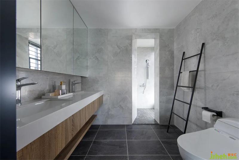 懸空的柜體讓空間更加通透,也便于打掃。濕區(qū)淋浴采光好,帶來清爽素凈的沐浴體驗。