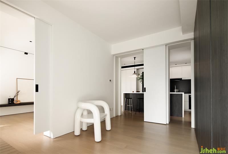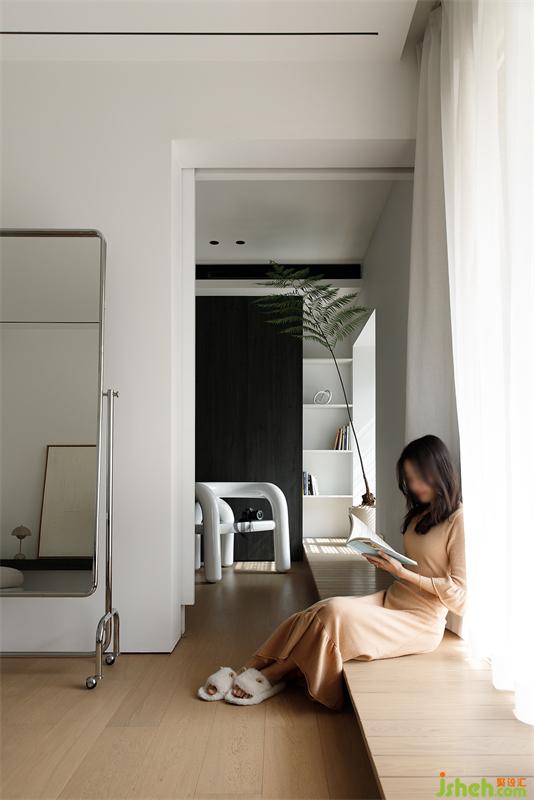 盡量讓人與空間、空間與光照、光照與人之間產(chǎn)生關(guān)聯(lián),是這個小家的精神內(nèi)核。白、原木色作主調(diào),呈現(xiàn)著內(nèi)斂優(yōu)雅的底蘊,又于平淡生活中象征著不會堙滅的熱愛與理想。