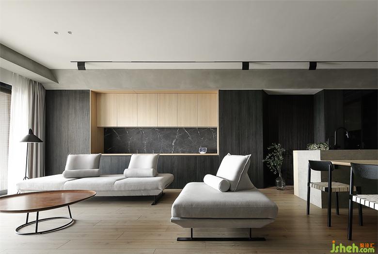 色調(diào)的選擇上以素雅為主并且融合了木質(zhì)元素呈現(xiàn)利落而純粹的都市氛圍感,家裝設(shè)計營造出一個曖昧的生活場域。
