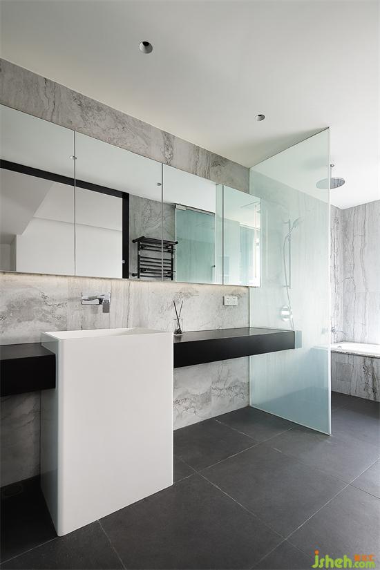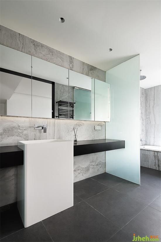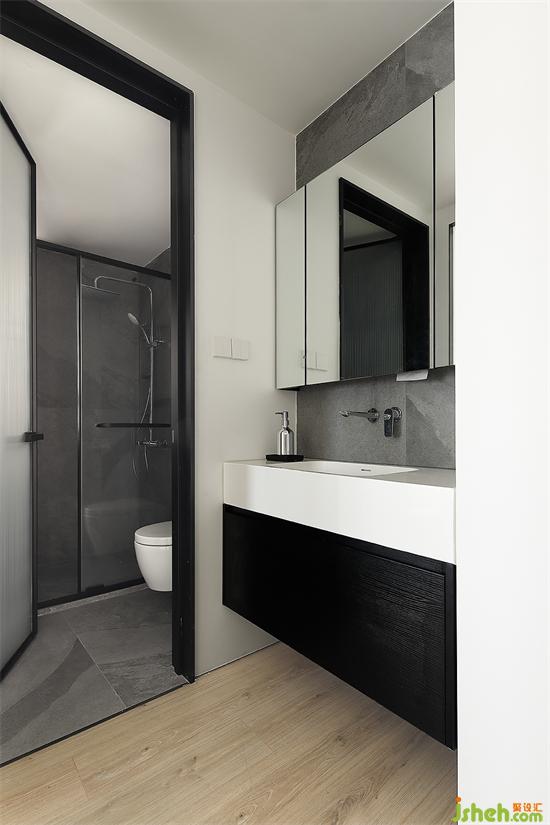 暗藏式龍頭、懸空洗手臺、干濕分離的衛(wèi)浴區(qū),家裝設(shè)計擁有利落高級的生活表達。深灰色、白色和黑色的配色,也滿足了一種持久的整體美學(xué)方案。