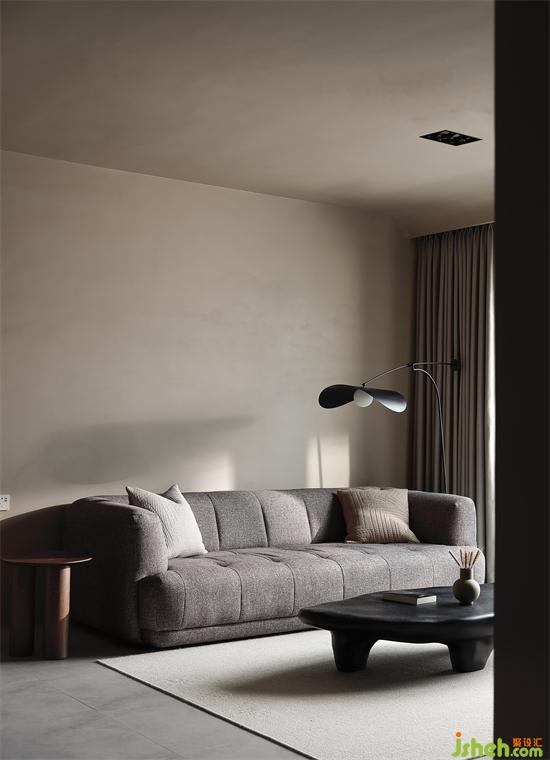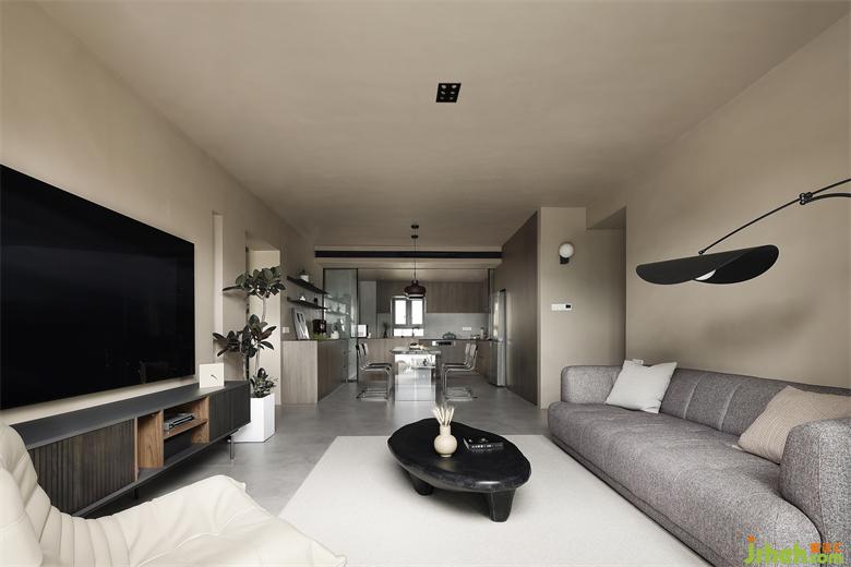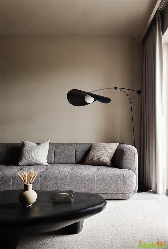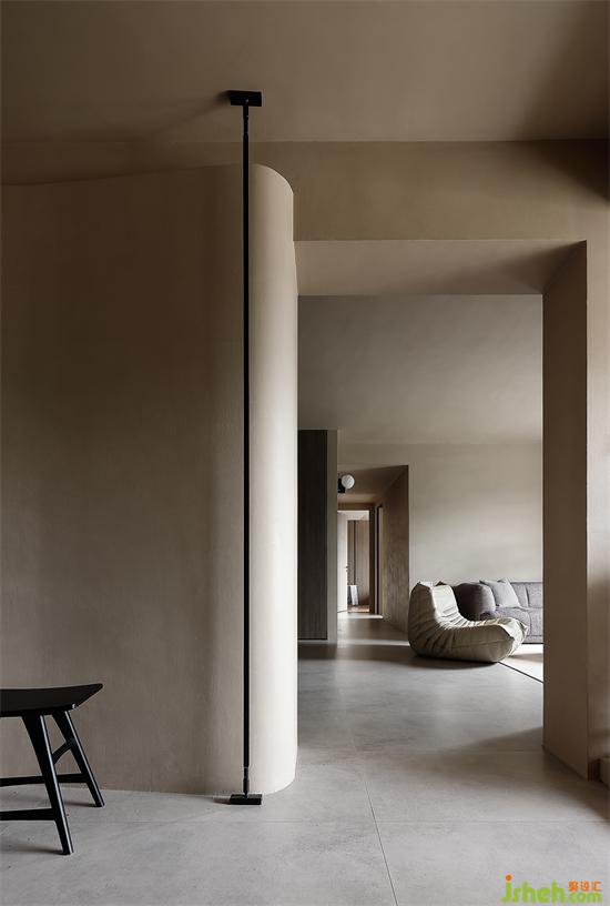空間以質(zhì)樸柔和的自然色彩氛圍展開敘事。家裝設(shè)計暖色調(diào)的微水泥帶來一種沉浸的體驗,適度的簡法與現(xiàn)代主義的自由關(guān)系,讓其充滿了隨性、溫暖的意趣……