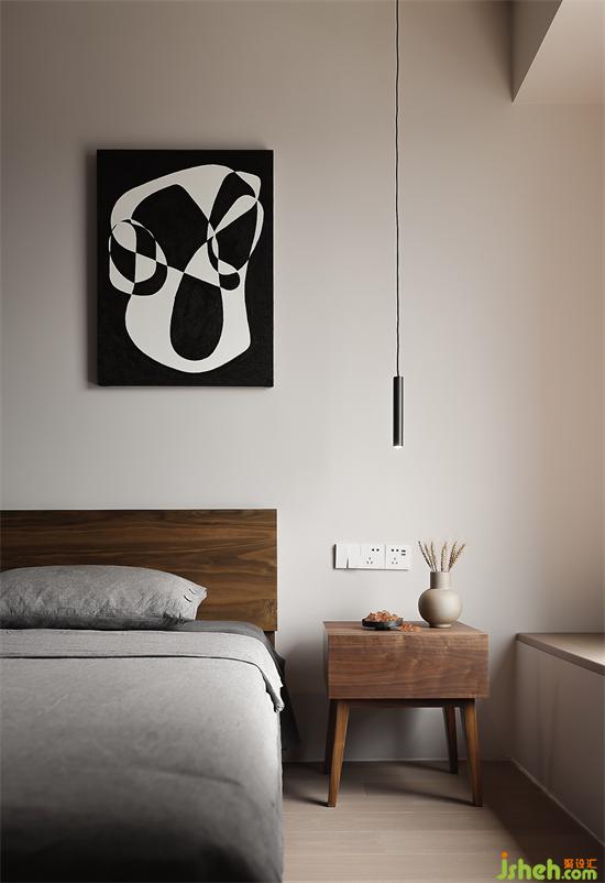 臥室區(qū)域同樣蔓延著一份溫馨與淡然。細(xì)膩的床頭木質(zhì)紋理呼應(yīng)著暖色空間,家裝設(shè)計(jì)利用簡(jiǎn)練的語言勾勒出柔和與秩序并存的哲理氣質(zhì)。