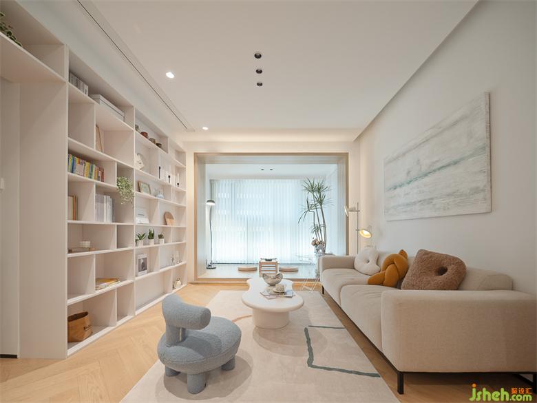 親子空間非常適合書房式客廳,家裝設(shè)計舍棄了電視墻的傳統(tǒng)布局,為孩子創(chuàng)造一個陪伴式的學(xué)習(xí)型空間,讓女兒在童年養(yǎng)成良好的閱讀習(xí)慣,隨著成長,再多的書籍也能容納。這里既是書房,也是影音游戲室,還有大面積的儲物柜。木制的小地臺搭配客廳柔軟的地毯,大人和孩子可以一樣席地而坐。午后,一本書,一杯茶,一部電影,在這里,可以是完美的一下午。
