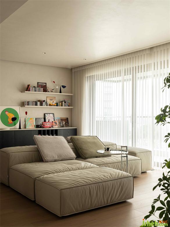 客廳的中心是一組輕盈的模塊化沙發(fā)。深圳金眾麒麟公館裝修設(shè)計外觀上看,沙發(fā)看起來像一朵朵松軟的云,也像一汪平靜的湖泊,讓室內(nèi)更具舒適感。每個模塊都可以在客廳中隨意移動,從而改變空間的布局和氛圍。