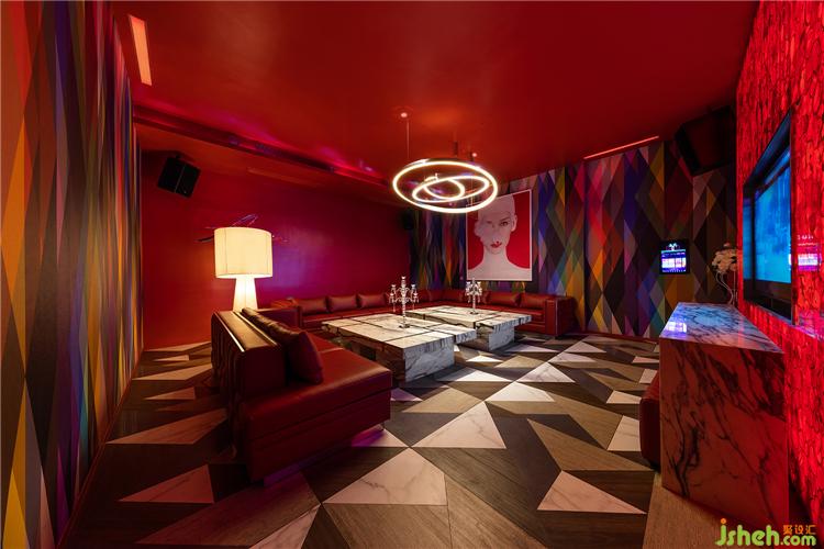 色彩是光的結(jié)果,在紅色包間,背景燈光加強(qiáng)了顏色的致密感和飽和度,讓人熱血沸騰。紅色激情滿溢,情緒高漲,給人難忘的印象。在超大臺燈、土星光環(huán)吊燈和巨幅現(xiàn)代油畫的幫助下,一個激情和戲劇的空間就此誕生。會所設(shè)計