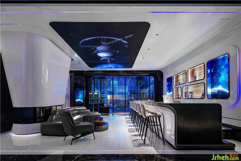 未來新科技元素的設(shè)計(jì)和使用,使俱樂部擺脫了傳統(tǒng)的沉悶感,讓置身其中的人們仿佛漫步在未來時(shí)空,準(zhǔn)備迎接下一個(gè)宇宙空間的到來。