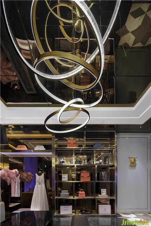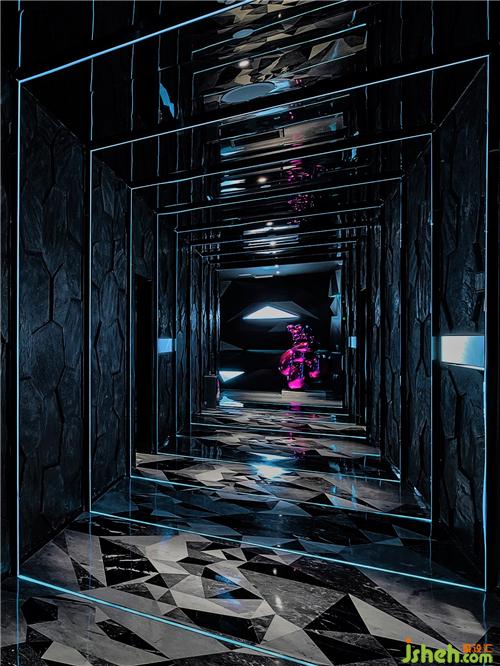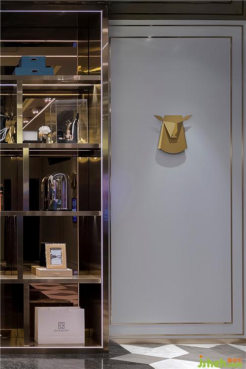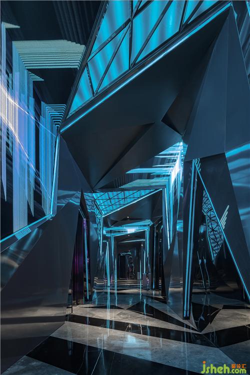 層層疊疊的幾何金屬構(gòu)件和影像塑造了整條走廊的遞進(jìn)節(jié)奏,并銜接了接待區(qū)的導(dǎo)引。