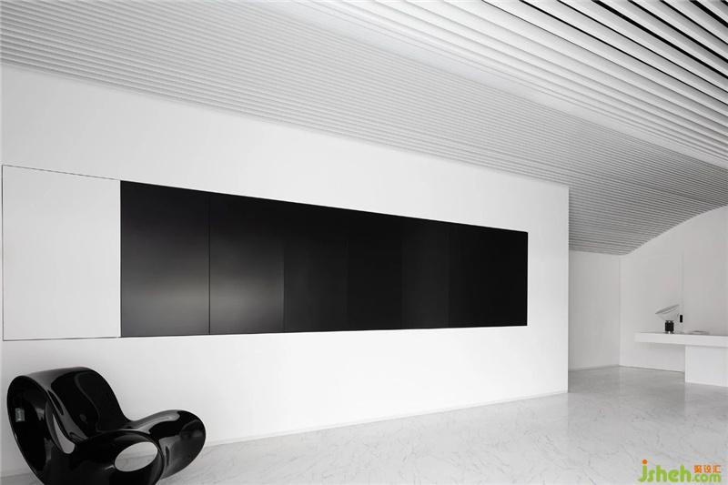從建筑外立面到室內(nèi),僅有白色。透過外立面巨大的玻璃窗,望進室內(nèi)的白,單一的白色卻因空間感而充滿層次。整個建筑由里及外的白,像剛采摘下的棉花般純凈。