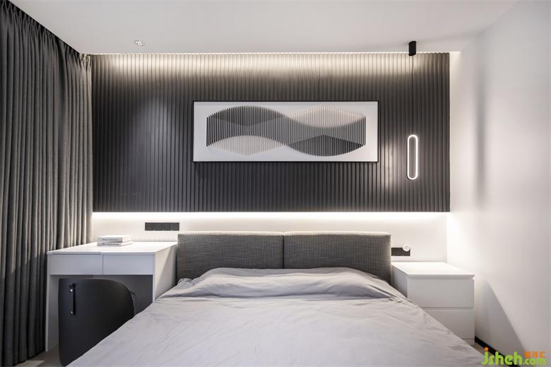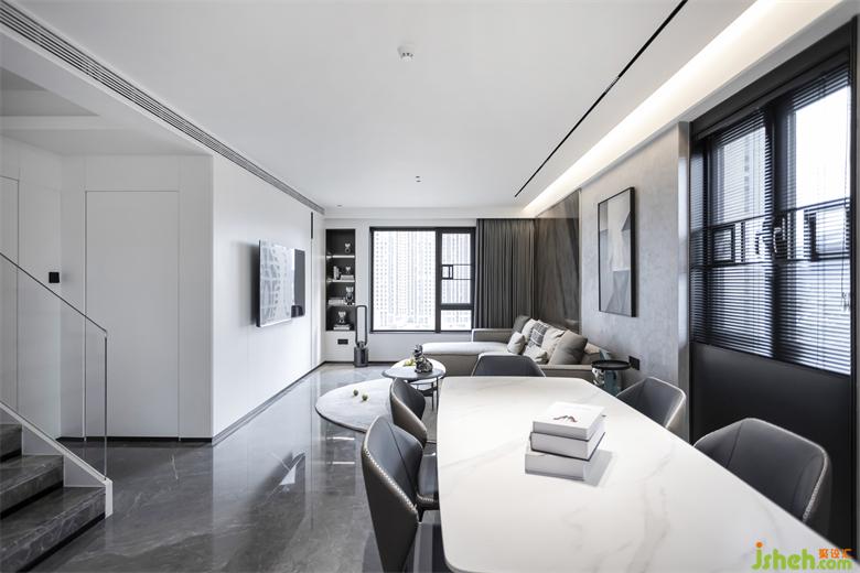 家裝設(shè)計(jì)以留白詮釋豐富、將風(fēng)格讓位于舒適,立面賦以白色平鋪墻面,玄武黑電視在局部穿插。一層的配置著重點(diǎn)在開(kāi)放。除臥室、衛(wèi)生間和廚房之外,運(yùn)用全開(kāi)放式設(shè)計(jì)公共空間,流暢的動(dòng)線、充足的玻璃窗邀請(qǐng)透亮的光感入室,并采用白色的墻面/柜體分色處理,協(xié)調(diào)空間整體的比重,延展空間的尺度??臻g的硬裝軟裝色彩調(diào)和了中度的灰。橙色是歡樂(lè)的跳躍,宛如指尖的音符。二樓為臥室、多功能區(qū)、洗理區(qū)…既有個(gè)人空間,又有社交空間。簡(jiǎn)約大方的多功能區(qū),沒(méi)有過(guò)于復(fù)雜的裝飾,視覺(jué)上更加舒適簡(jiǎn)單。