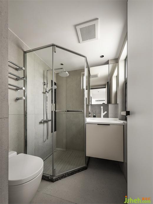 以灰色為主調(diào)的衛(wèi)生間無(wú)需其他的修飾就是最好的基色,裝修公司粗糙的砂石肌理瓷磚,光亮的鉻色配件,自然與質(zhì)感并行。