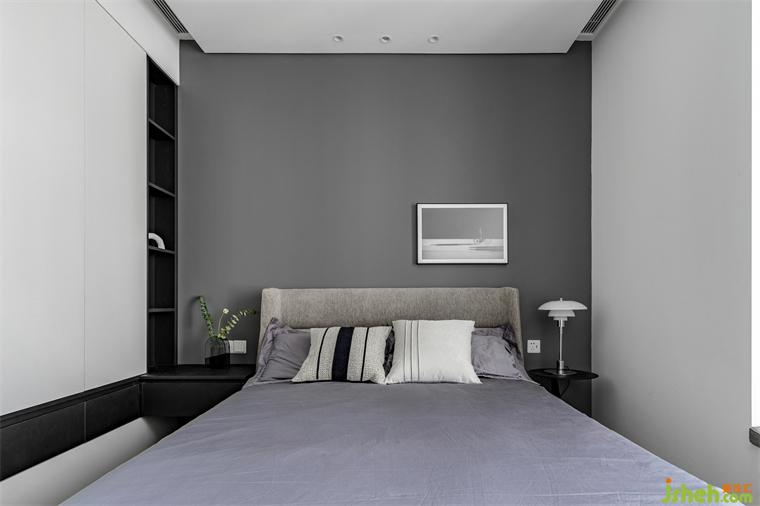 父母房巧妙的用衣柜和床頭柜做了結(jié)合,橫縱向的延伸,無形中擴大了空間,深灰色床頭背景的鋪陳,使得空間更為沉穩(wěn),再加以裝飾畫的點綴,盡顯優(yōu)雅舒適。