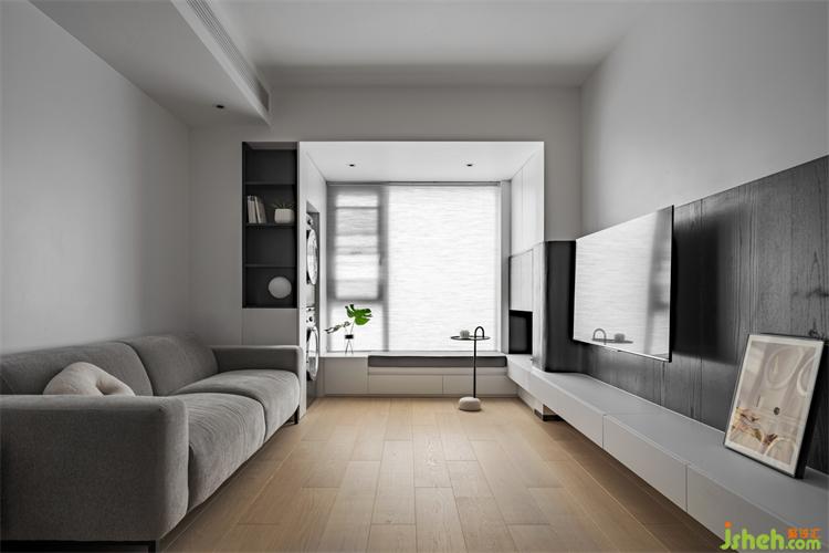 大面積的落地窗下安置的白色卡座,配上小小的邊幾,便成了休閑放松的小角落,下面的抽屜,也可用于收納家中的小物件,一線一面,都呈現(xiàn)出次序分明的空間狀態(tài)。