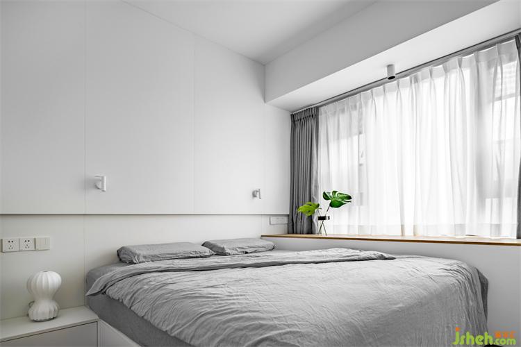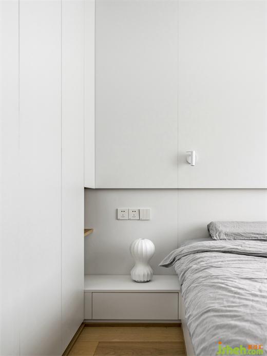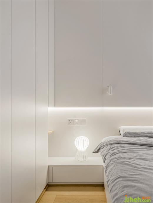 室延續(xù)了空間的整體配色,并且將其做到了極致,映入眼簾的都是干凈與純潔,家裝設(shè)計(jì)白色的衣柜與護(hù)墻板形成連接,置入燈帶,再配上精致小巧的床頭燈,可以實(shí)現(xiàn)不同的燈光氛圍,感官上的簡(jiǎn)約也落實(shí)在細(xì)節(jié)之處。