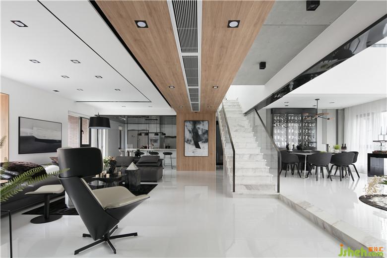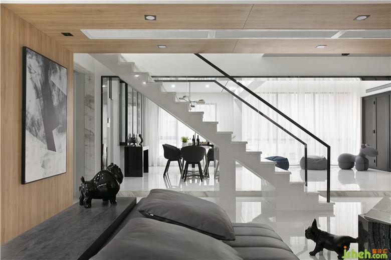本案業(yè)主系兩位從事時(shí)尚事業(yè)的業(yè)主,追求比較純粹的空間,喜歡干凈明亮的空間感受。室內(nèi)設(shè)計(jì)師采用大面積不同質(zhì)感的白色材質(zhì)做為畫布,利用黑色不銹鋼線條元素作為畫筆勾勒出空間流線。地面全部純白色地磚,白色烤漆柜門,白色大理石電視背景墻,搭配大塊面溫和質(zhì)感木飾面,在墻面和天花上采用線條元素進(jìn)行空間延伸,塑造出空間之間的聯(lián)系。大客廳背景裝飾用到了木絲水泥板做構(gòu)成處理加上藏?zé)簟H峁馀c灰調(diào)碰撞,冷淡與熱情都恰如其分的點(diǎn)綴進(jìn)我們空間內(nèi)。