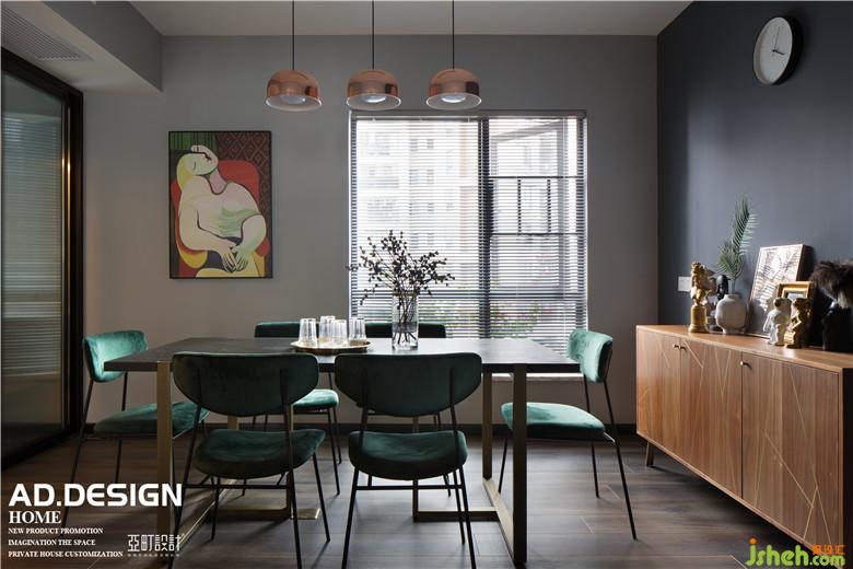 在色彩方面,室內(nèi)設(shè)計(jì)師將餐廳墻面的煙灰藍(lán)與客廳沙發(fā)背景墻遙相呼應(yīng),而墻面上掛著的畢加索的《夢(mèng)》,則是整個(gè)餐廳的點(diǎn)睛之筆,最簡單的繪畫表現(xiàn)出了一個(gè)在夢(mèng)境和現(xiàn)實(shí)中的少女,不僅映襯了這個(gè)家的同時(shí)提升整個(gè)空間的藝術(shù)氛圍。