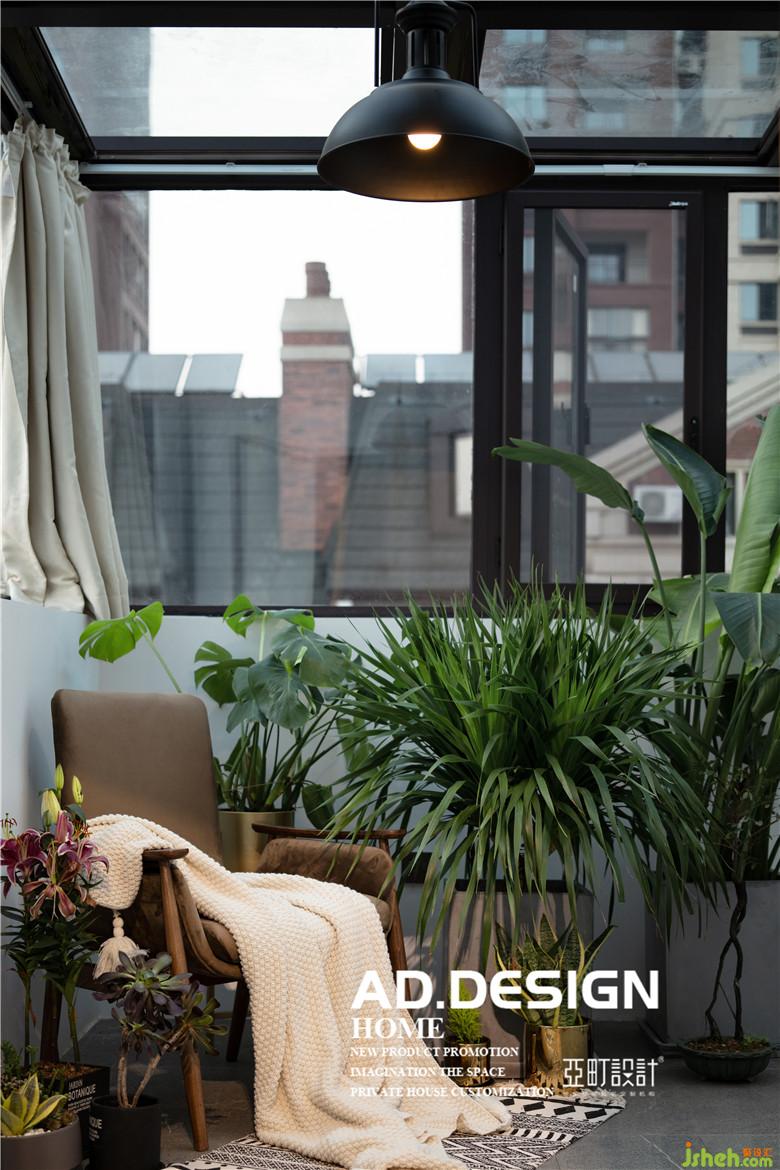 電視墻的一邊是一道進(jìn)入生活陽(yáng)臺(tái)的隱形門(mén),對(duì)稱(chēng)的另一邊則是玻璃陽(yáng)光房,專(zhuān)屬于小仙女的多肉世界。