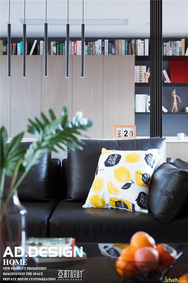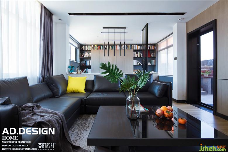 客廳在設(shè)計(jì)上向外延伸,占用了部分露臺(tái)面積。室內(nèi)設(shè)計(jì)師在擴(kuò)大客廳的使用面積的同時(shí),解決了露臺(tái)門直對(duì)入戶門的問題。