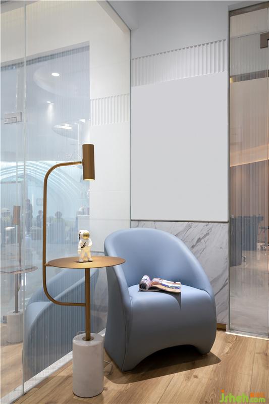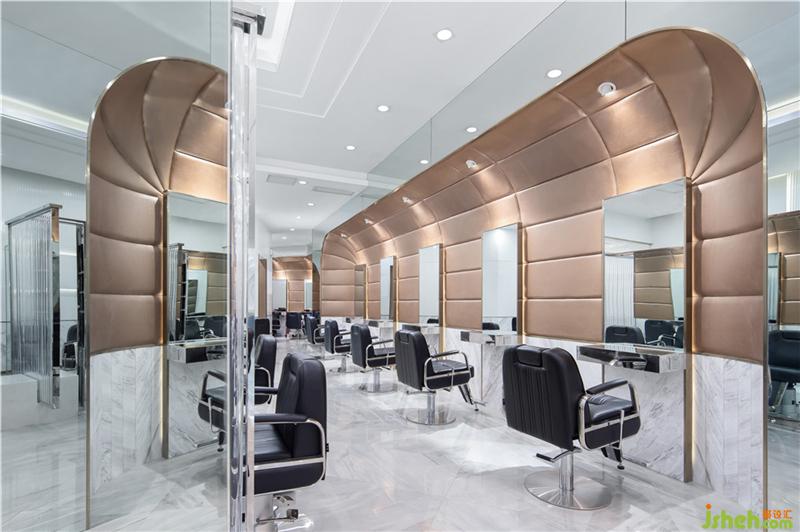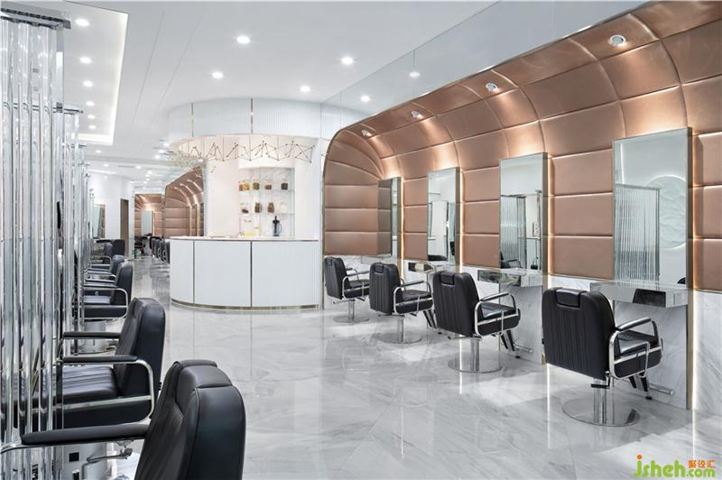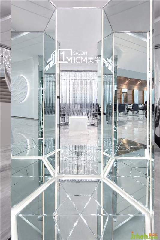進(jìn)去開(kāi)放剪發(fā)區(qū)延續(xù)白色基調(diào)的同時(shí),加上反光的鏡面,鏡面不銹鋼和透明玻璃圓柱。白色的空間有了閃耀,活波,未來(lái)的風(fēng)格。像是一次從古代穿越未來(lái)的旅途。裝修公司
