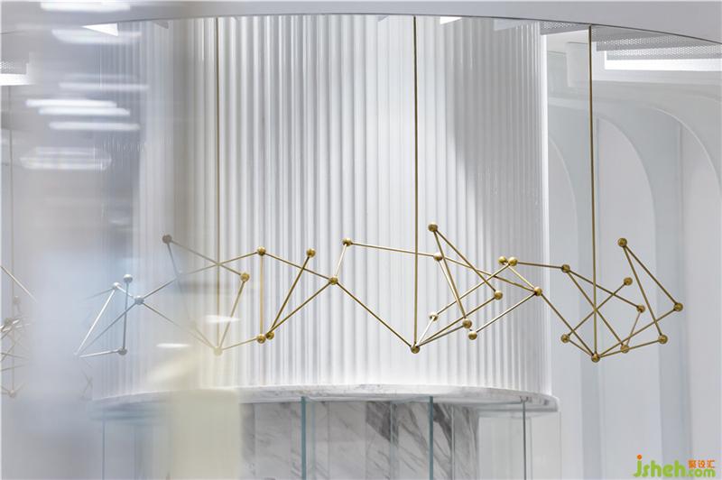 入口處的白色紗網(wǎng)拱道,靈感來(lái)源于古歐洲宗教建筑,用現(xiàn)代的方式重新解構(gòu)表達(dá)古建筑形態(tài),使空間既有現(xiàn)代風(fēng)格的干凈簡(jiǎn)潔基調(diào),又帶有一點(diǎn)古建筑的優(yōu)雅神秘靈魂。
