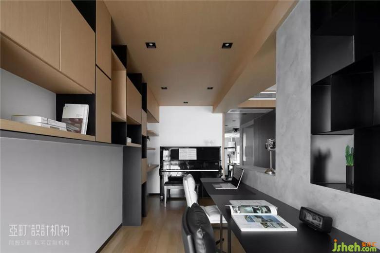 在設(shè)計(jì)上,特意將書(shū)吧的空間界面延伸至客廳,