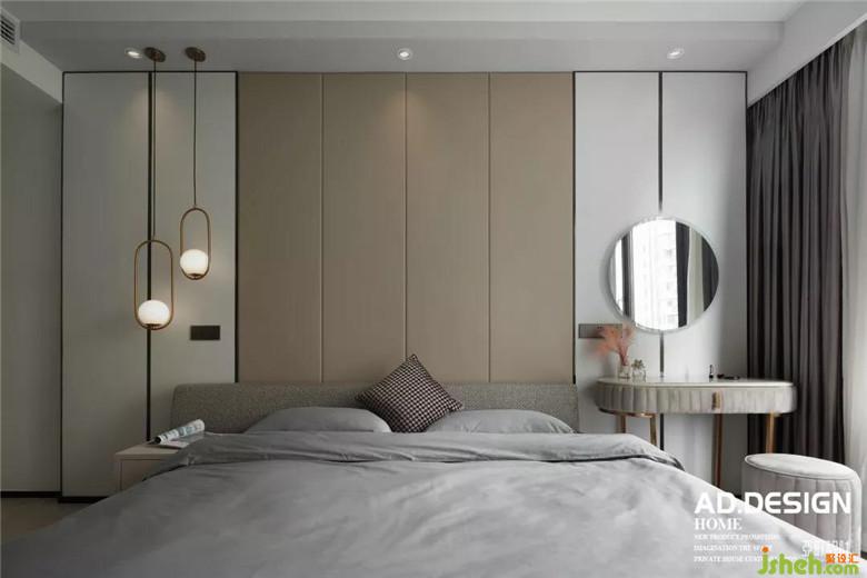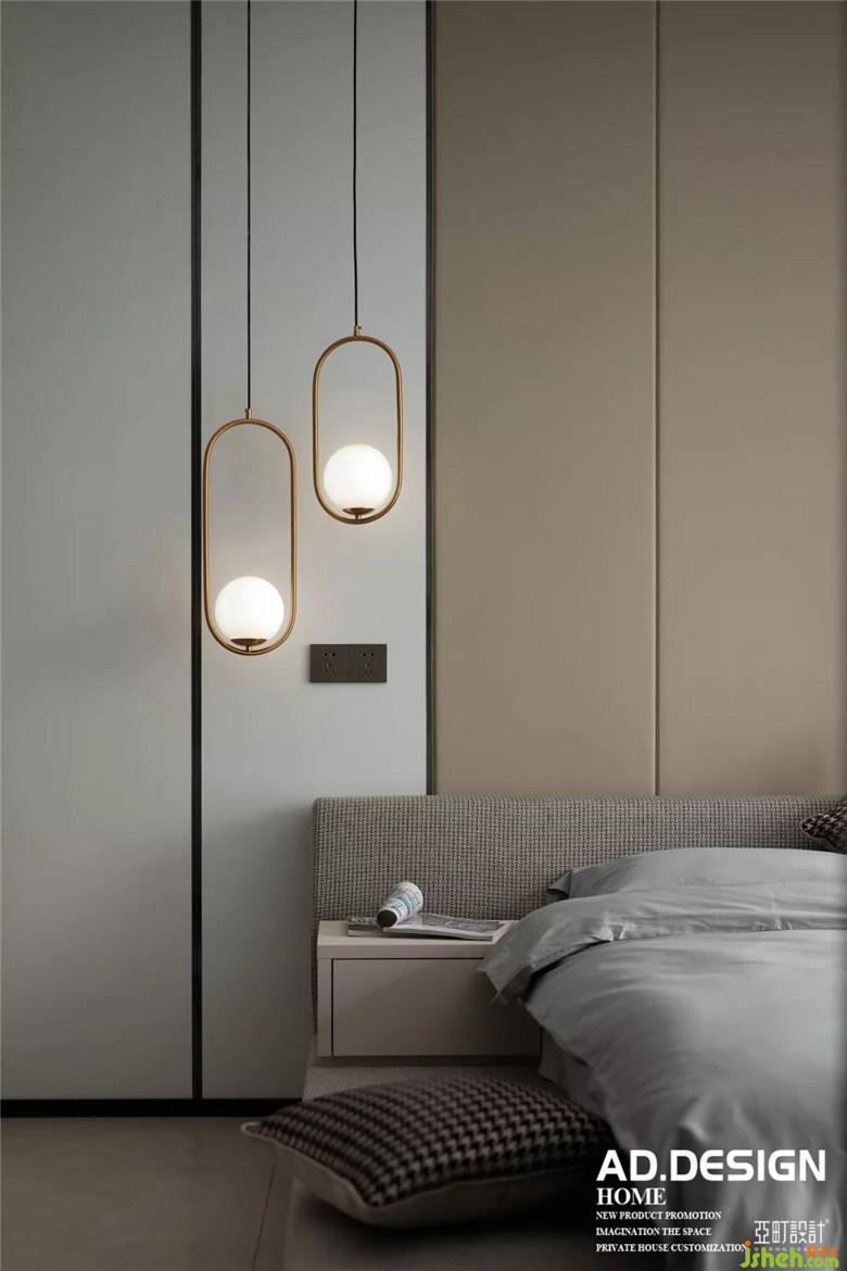床的一側(cè)是有設(shè)計(jì)感的吊燈,
