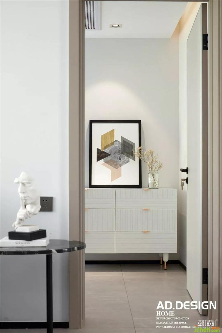另一側(cè)是帶有鏡燈的梳妝臺區(qū)域,