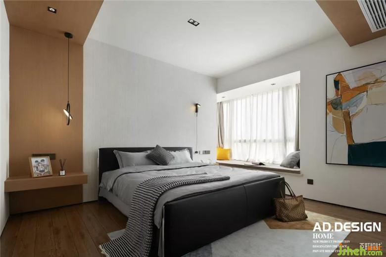 幾何結(jié)構(gòu)頂面、木飾面墻面、紋理感壁紙、是這個空間的面貌,裝修公司配上設(shè)計感的壁燈和色塊拼接畫裝點了這一室的溫柔時,多了一份色彩的跳躍愉悅。