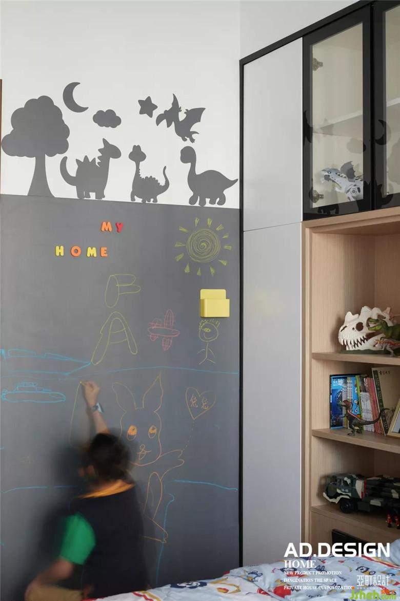 同色系的裝飾畫搭配整體空間的線條感,KAWS玩偶是小精靈給男孩的禮物,也成為了整個空間的點綴。