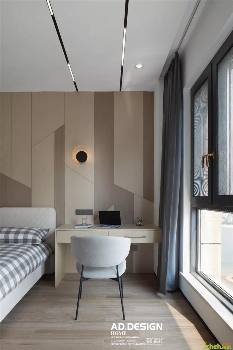 為未來寶寶準備的小孩房以木飾面板的造型為主,營造出比較中性的空間質(zhì)感,擁有較大的空間,有寶寶后可以根據(jù)寶寶的性別進行軟裝搭配與裝飾。