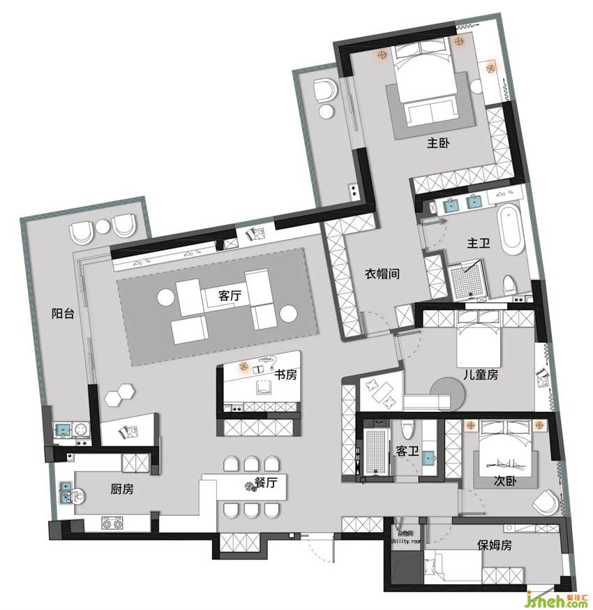 將動靜區(qū)域重新劃分,既滿足了開放式互動空間,又使得空間私密性更佳