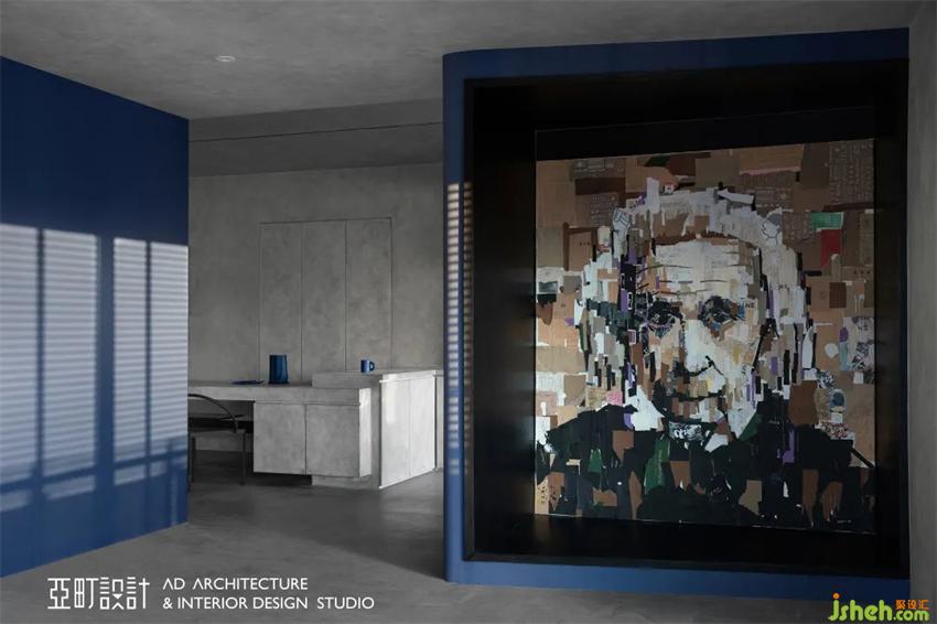 女主人是個(gè)知名節(jié)目的編導(dǎo),有一期是一個(gè)畫家拍賣畫,她就把這個(gè)畫帶回了家?!敖o它安個(gè)家吧~”設(shè)計(jì)師把它安置在了落地床旁,形成了一個(gè)休閑區(qū)。這幅藝術(shù)大畫以新穎的拼接藝術(shù)做出極具個(gè)人風(fēng)格的視覺效果。