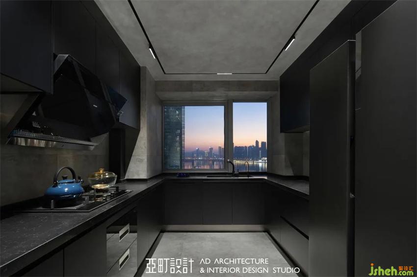 長(zhǎng)沙家居設(shè)計(jì)契合U型布局的半圍合式動(dòng)線布局,從使用、生活、人的角度出發(fā),設(shè)計(jì)更便捷的廚房空間。