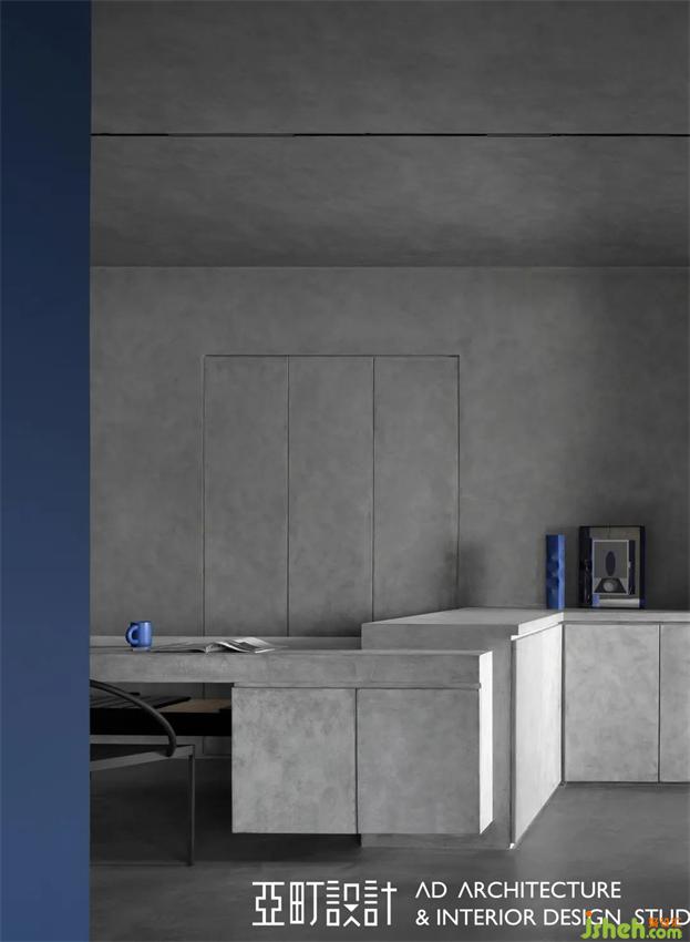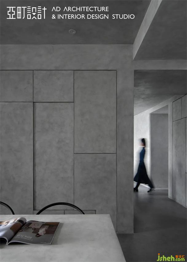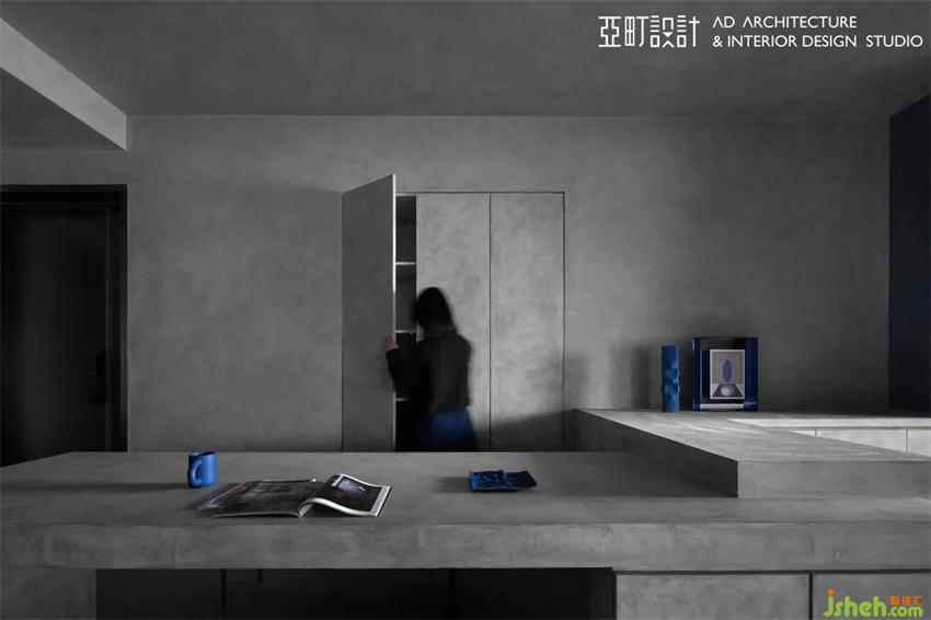 延續(xù)灰色的調(diào)性,空間顯得并不繁雜,四周都做了到頂?shù)碾[形柜,滿足日常用品的收納。