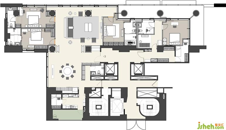 積極保留所有空間大面采光,為百坪的都會住宅帶來飽滿光線及遼闊視野,而象山自然風(fēng)景與都會景致則同時(shí)延伸至內(nèi)部,在繁忙日常增加了綠意情調(diào),住宅空間設(shè)計(jì)也展現(xiàn)出奢華中的平靜美好與質(zhì)感氣度。
