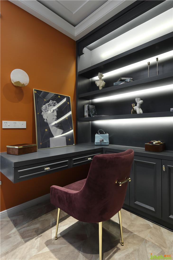 愛情總是不期而遇,阿米地奧.莫迪里阿尼看著眼前的珍妮說到。給我當模特我會讓你名垂青史。于是他們相愛了。珍妮狂熱的愛著阿米地奧、因為宗教不同,她不惜與家庭決裂也要與他在一下。他們的愛情像極了本案在霧霾藍包裹下的燦爛的橙色,阿米地奧為珍妮創(chuàng)造了二十多幅肖像每一幅都是給珍妮畫布上的情書。霧霾藍平和穩(wěn)定,橙色的溫暖與熱情猶如她兩的性格互補又和諧。他倆的愛情就猶如本案的兩名業(yè)主一樣堅貞不渝。餐廳兩幅阿米地奧的名作,時刻致敬這位畢加索最大的勁敵,他就好比餐廳貝殼燈一樣璀璨奪目。主臥室大面積的橙色就像珍妮熾熱而真誠的愛溫暖著落魄時候的阿米地奧。