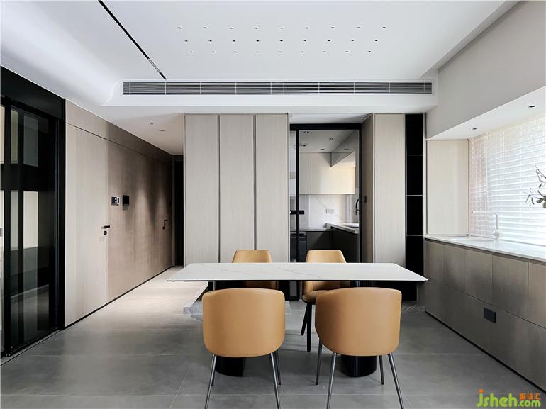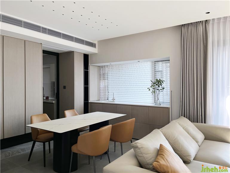 厚墻打薄增加空間的使用面積,書房位置打開,使客餐廳空間更大,深圳家裝設(shè)計(jì)通風(fēng)采光效果更佳,滿足業(yè)主需求在簡約風(fēng)中,墻面沒有過多的修飾,大面積木飾面使整個(gè)空間更佳簡潔,塊面明確。