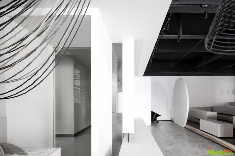 為了最大限度地實(shí)現(xiàn)空間邊界的貼切感受,為用戶營造出安靜、自在的存在真實(shí)感,碩瀚創(chuàng)研賦予了人造光全新的使命,我們將人為的聚光光源對(duì)焦在展覽產(chǎn)品本身,弱化公共通道光源,自然而然形成一條光的指引動(dòng)線。光線讓用戶一小步、一小步地走出屬于空間里的動(dòng)線,隨光游走,模糊了開始與結(jié)束的概念。半圓的分割卻又串聯(lián)起各區(qū)域的邊界線。步行其間,移步換景的愉悅是豐富而具體的,而不同場景的轉(zhuǎn)換也帶來了驚喜的體驗(yàn),身體已然成為空間的靈魂組成部分。他,是在雕塑空間!寂靜在說話!