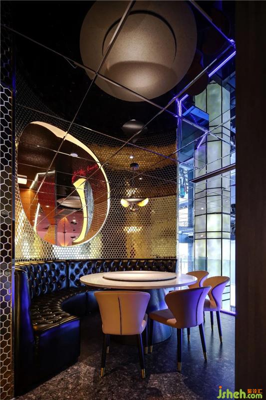 在空間中,有許多有意思的打卡區(qū):進(jìn)門水吧臺(tái)的星空頂、玻璃扶手的旋轉(zhuǎn)樓梯、二樓包間區(qū)等等;自帶打卡點(diǎn)的門店,會(huì)帶來許多來自朋友圈的免費(fèi)流量燒烤裝修設(shè)計(jì)。
