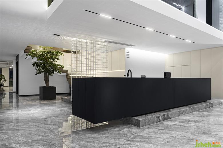 設(shè)計(jì)師以黑白灰色為空間主調(diào),用簡(jiǎn)練的筆法塑造開闊的空間,營(yíng)造出簡(jiǎn)約淡雅的待客空間。接待前廳設(shè)計(jì)將力學(xué)美感、視覺張力及照明結(jié)合在一起,作為功能部分融入公共空間。整個(gè)辦公區(qū)采用了人臉識(shí)別、聲控系統(tǒng)、智能會(huì)議系統(tǒng)、背景音樂、智能燈光等為國(guó)際化創(chuàng)新辦公環(huán)境加持、傳達(dá)了與時(shí)俱進(jìn)的精神。