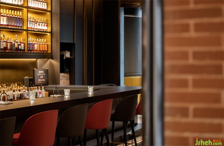 空間整體以來自全球各地的威士忌為背景,餐廳設計在結(jié)合簡約線條鍛造簡約而貴族奢華的空間體驗,暗綠、深褐、深銅色等暖色系的大量運用,使得場域極富時尚及穩(wěn)重氣息。