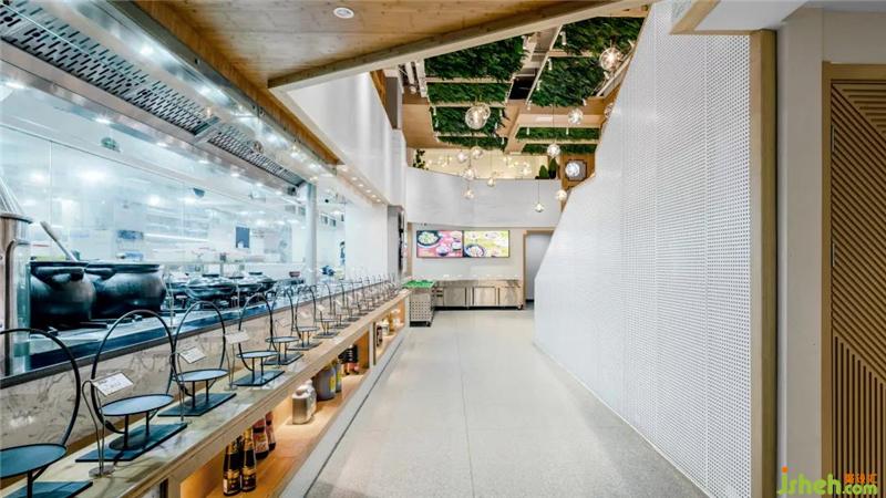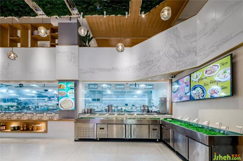 餐飲,僅僅只是人們?nèi)粘I钪械囊环N“儀式”,而好的商業(yè)空間設(shè)計(jì)師要做的,就是讓這種“儀式”的發(fā)生地與消費(fèi)者的內(nèi)在訴求產(chǎn)生關(guān)系。原木色的卡座區(qū)構(gòu)建的內(nèi)層空間,給予了相對(duì)私密的個(gè)人化時(shí)光,綠植的加入通透了層高帶來的局限,并且加入了中國(guó)古典園林和寫意花鳥的元素,讓就餐體驗(yàn)變得清麗、舒適。“食物與自然”并置是設(shè)計(jì)師在空間中構(gòu)建的進(jìn)食體驗(yàn),上下貫通的原木色樓梯隔離開了中央廚房里的忙碌和嘈雜,挑高的處理加強(qiáng)了空間的通透性,綠色得以在木色中肆意生長(zhǎng)。用餐的每一個(gè)細(xì)節(jié)都值得全心全意對(duì)待,從餐具的款式搭配,一桌一椅擺放的位置,到室內(nèi)室外的光影變化,都要經(jīng)過悉心考慮,每位食客都能從細(xì)節(jié)處發(fā)現(xiàn)驚喜,收獲最愉悅的心情以及最貼心的用餐體驗(yàn)。設(shè)計(jì)師有意的采用簡(jiǎn)單和深邃的色調(diào)架構(gòu)整個(gè)空間,弱化原有的局限性。開方式廚房上部裝飾中國(guó)畫寫意長(zhǎng)卷,讓人們把遠(yuǎn)方的山水和眼前的煙火融為一處,同時(shí)還以U型池的連貫作為與功能兼?zhèn)涞脑煨?,使靜態(tài)空間充滿動(dòng)態(tài)的流動(dòng)感,同時(shí)帶出顧客在這個(gè)空間流動(dòng)意識(shí)。餐飲,作為我們生活中最重要也最日常的消費(fèi)與生活方式,餐飲空間的設(shè)計(jì)不再是單純的構(gòu)建簡(jiǎn)單的餐飲形式和就餐環(huán)境這么簡(jiǎn)單,隨著新穎的飲食文化熱潮和不斷更新的就餐方式以及人們對(duì)就餐環(huán)境品味的追求,餐飲空間的設(shè)計(jì)也進(jìn)行創(chuàng)新與發(fā)展。餐廳設(shè)計(jì)