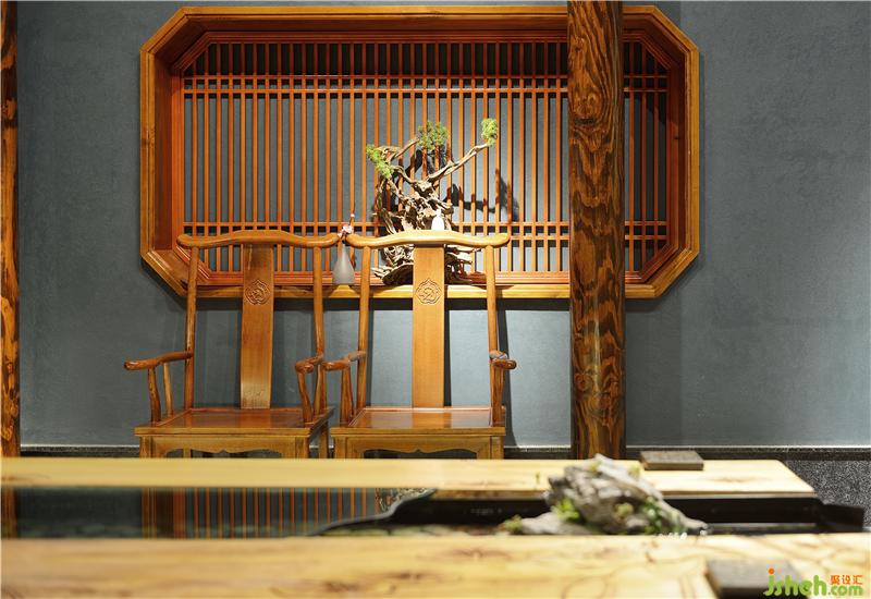 中國傳統(tǒng)的室內(nèi)設(shè)計(jì)融合著莊重和優(yōu)雅的雙重品質(zhì),木結(jié)構(gòu)形式在中式建筑中顯的成熟穩(wěn)重。古語云:“宇,屋檐也;宙,棟梁也?!比俗治蓓斣谥惺浇ㄖ卸嘤畜w現(xiàn),木制家具的古樸和木雕門板精美相得益彰。餐廳設(shè)計(jì)