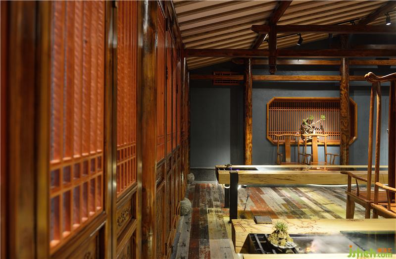 本案為純中式的餐飲空間設(shè)計(jì),在設(shè)計(jì)之初便從布局考慮將這古樸之意注入在每一寸不經(jīng)意中,或頂上,或墻面,或擺件;